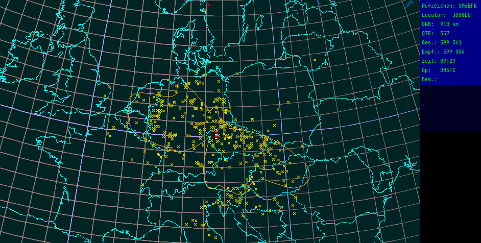 DM7A - MMC 2025 Results and PicturesResults: DM7A in JO6ØOMStatistik für Band 145 MHz=============================== Contest: MMC25 QSOs: 457 Valid QSOs: 451 QSO-Punkte: 154866 Punkte: 154866 Durchschn. Pkt/QSO: 338,88 Durchschn. QSO-P/QSO: 338,88 Punkte/50 QSOs: 17302 LOCs: 73 ------------- JO31: 7646 17 JO43: 2820 7 KN05: 1558 2 JN74: 662 1 JN89: 5659 21 JN87: 2711 6 JO41: 1538 5 JN28: 655 1 JN99: 5481 14 JO53: 2622 7 JO71: 1413 9 JO63: 642 2 JO32: 5237 12 JN58: 2582 9 JN64: 1391 2 KN09: 642 1 JN98: 5116 11 JO42: 2551 7 KN07: 1303 2 KN08: 593 1 JO30: 4969 12 JN85: 2510 4 JN96: 1277 2 JO20: 589 1 JO52: 4905 18 JN38: 2488 5 JN68: 1201 5 JN55: 585 1 JN76: 4799 10 JO22: 2439 4 JN69: 1120 10 KO02: 566 1 JN49: 4560 14 JN79: 2369 15 JN78: 1087 4 JO81: 551 2 JN65: 4390 8 JN63: 2304 3 JN59: 1059 6 JO33: 507 1 JN75: 3841 7 JO51: 2260 12 JO68: 911 1 JO80: 487 2 JO50: 3725 26 JN39: 2255 5 KO24: 885 1 JO91: 478 1 JN54: 3532 5 JO40: 2244 7 JO58: 881 1 JO72: 442 2 JN86: 3513 7 JO10: 2073 3 JO54: 861 2 JO74: 440 1 JO70: 3451 29 JO61: 2029 21 KN04: 842 1 JO60: 406 11 JN97: 3327 6 JO62: 1883 9 JO90: 815 2 JN67: 291 1 JN88: 3244 9 JO02: 1695 2 JN84: 709 1 JN95: 2834 4 JN37: 1654 3 KN06: 683 1 JN48: 2825 8 JN19: 1577 2 JN36: 676 1 ![]() DXCCs: 21 ------------- DL: 60168 222 9A: 8053 13 SM: 1792 2 YO: 767 1 OK: 17232 93 F: 6668 11 G: 1695 2 T7: 735 1 HA: 10576 19 PA: 4441 8 YU: 1633 2 LX: 522 1 OM: 9971 23 OE: 3753 11 E7: 1426 2 I: 9788 15 SP: 3012 8 HB: 1134 2 S5: 8705 17 ON: 1910 3 LY: 885 1 Stunden ---------- Stunde Punkte QSOs AVG pts/QSO 14-15: [**************** ] 10999 : [********************] 43 : 255 odx OM3KHU 15-16: [***************** ] 12195 : [****************** ] 40 : 304 odx SM6VTZ 16-17: [******************* ] 13057 : [***************** ] 37 : 352 odx LY2WR 17-18: [***************** ] 11889 : [***************** ] 37 : 321 odx IQ5NN 18-19: [************** ] 9557 : [************ ] 27 : 353 odx ON6MG/P 19-20: [********************] 13625 : [****************** ] 39 : 349 odx G4PIQ 20-21: [*********** ] 8157 : [********** ] 23 : 354 odx IO2V 21-22: [************** ] 10161 : [********** ] 23 : 441 odx YU1LA 22-23: [********* ] 6188 : [******* ] 17 : 364 odx 9A7RR 23-24: [******* ] 5073 : [********* ] 20 : 253 odx YT7C 05-06: [ ] 511 : [ ] 2 : 255 odx OM2DT 06-07: [******* ] 5348 : [******* ] 16 : 334 odx IK4PMB 07-08: [* ] 822 : [* ] 3 : 274 odx S53JPQ 08-09: [************ ] 8191 : [********** ] 22 : 372 odx F8BRL/P 09-10: [************* ] 9395 : [*********** ] 25 : 375 odx SM6BFE 10-11: [************ ] 8703 : [********** ] 22 : 395 odx IQ4KD 11-12: [********* ] 6212 : [******** ] 19 : 326 odx HB9NE 12-13: [******* ] 5224 : [****** ] 15 : 348 odx IK5AMB 13-14: [************** ] 9559 : [************ ] 27 : 354 odx ON4KHG TOP 10 DX QSOs: -------------------- SM6BFE JO68DQ 910 km LY2WR KO24FO 884 km SM6VTZ JO58UJ 880 km G4PIQ JO02OD 852 km G4LPP JO02SS 841 km YU1LA KN04FR 841 km F6DWG/P JN19BQ 795 km IQ8BI JN63NJ 792 km YT7C KN05EG 790 km F8BRL/P JN19EN 780 km Map of QSOs: ------------------ >>> LINK <<< OPs: DH5FS, DM5NN Pictures